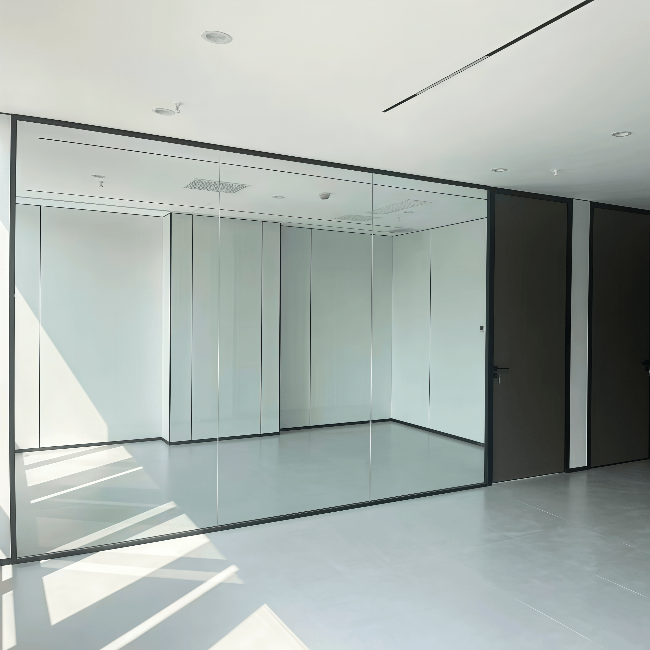 | Kontrola akustyczna | Opcjonalne warianty szkła laminowanego osiągają redukcję hałasu do 50 dB Utrzymuje prywatność mowy w salach spotkań bez izolacji wizualnej |