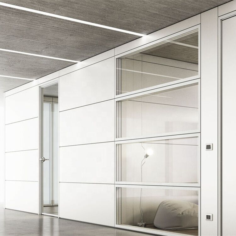 System szklanych ścian przegrodowych biurowych z samonośnymi płytami zasłonowymi ze szkła i drewna. Dostępne w wersjach jednokształtowych, podwójnych lub dwukształtowych. Są zarówno opracowane, jak i nieopracowane,Ale tak czy inaczejTy.../Mamy następujące zalety w porównaniu z zwykłym gipsem.