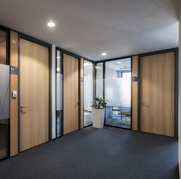 1) Elastyczna konstrukcja powierzchni: Przegrody oferują szeroki zakres konstrukcji. Wybierz ze szkła przezroczystego, zamrożonego, płaszczonego, PDLC lub barwionego dla przejrzystości lub prywatności.Opcje płyt masywnych z melaminy lub stali w szerokim wyborze kolorów i tekstur.