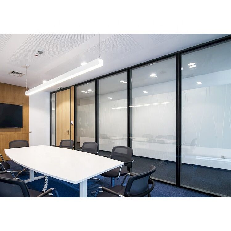 System szklanych ścian przegrodowych biurowych z samonośnymi płytami zasłonowymi ze szkła i drewna. Dostępne w wersjach jednokształtowych, podwójnych lub dwukształtowych.Ale tak czy inaczejTy.../Mamy następujące zalety w porównaniu z zwykłym gipsem.